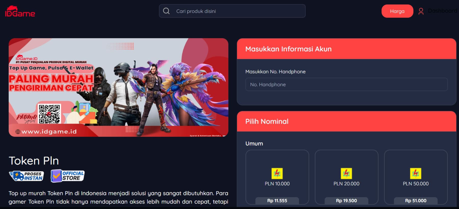 Top Up Token PLN di IDGame.id